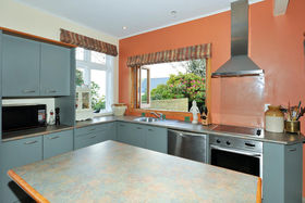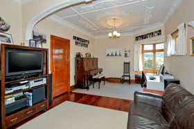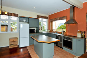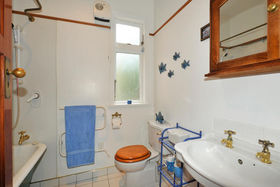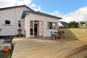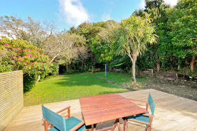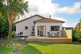 This 1930 bungalow retains all of its original character, with leadlight windows, timber floors, carrara ceilings and rimu doors. It offers 3 comfortable bedrooms, a bathroom and an ensuite. The spacious lounge and modern kitchen flow through to French doors and bi-fold windows opening onto a deck at the back.  A large sunny flat lawn, perfect for children and pets, abuts native bush where tui and kereru will entertain you all summer long. Transportation, shops and schools are a very short walk away.