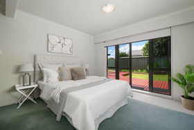 At the heart of the home, open plan living and dining flow effortlessly to the deck and backyard, ideal for children and pets to play. The master bedroom enjoys direct access to the deck and garden, while another bedroom connects conveniently to the family bathroom. There are two air conditioning units to ensure comfort throughout the year.