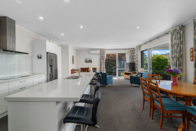 Situated in the highly sought-after Hansard Place, this beautifully crafted single-level home built in 2016 by Golden Homes and has been lovingly enjoyed by its one and only owners. Positioned in a quiet, safe cul-de-sac in the heart of Bethlehem, it offers peace, privacy, and an exceptional sense of community. Constructed with steel framing and fully insulated, the home is impeccably maintained and designed to suit families, retirees, or couples who love to entertain. The thoughtful floor plan delivers tremendous appeal, with two separate living areas that balance togetherness and retreat. At the heart of the home is a light-filled, sunny open-plan living and dining space, anchored by a generous modern kitchen featuring a large benchtop, double wall oven, fitted microwave, and a spacious scullery, perfect for hosting and everyday ease. Sliding doors open seamlessly to a covered patio, creating a fantastic indoor-outdoor flow for entertaining or relaxing year-round. The surrounding rose gardens are picturesque and private, ideal for those with a green thumb, and the property is not overlooked, enhancing the sense of seclusion. A sophisticated formal lounge, complete with a gas fire, can be closed off, offering adults a cosy retreat while kids enjoy the open-plan family living area. The home boasts four well-proportioned bedrooms, one currently used as a study and two bathrooms. The master suite opens directly onto the patio and includes a walk-in wardrobe and ensuite, while the family bathroom services the remaining three bedrooms with ease. Practicality hasn't been overlooked, with excellent storage throughout, a separate laundry with outdoor access, and a double internal-access garage complete with workspace and additional off-street parking. Added features include filtered water, two heat pumps, solar hot water heating, and an automatic alarm system. Surrounded by other quality homes in this premium Bethlehem enclave, opportunities to secure a property of this calibre are rare, reflecting the comfort and lifestyle the current owners have so enjoyed. Zoned for Bethlehem School and just minutes from the local shopping complex, this well-loved central address offers lasting value in a highly desirable location.