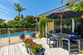 Upstairs, the home opens into a welcoming lounge with gas fireplace and sliding doors to the deck and swimming pool. The lounge can be closed off for cosy evenings or left open to flow seamlessly into the open plan dining and kitchen. The dining area features a charming bay window seat overlooking the pool " the perfect spot for a morning coffee as the sun streams in. A modern kitchen with induction cooking, generous breakfast bar and excellent storage completes the space.