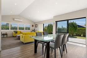 Tucked away behind lush, established hedging, 12 Ellesmere Close offers a sense of calm from the moment you arrive. Framed by greenery and beautifully presented from the street, this is a home that feels welcoming, secure and effortlessly liveable. Step inside and you're immediately drawn into the open plan kitchen, dining and living zone where the raked ceilings elevate the entire space. The pitched ceiling enhances natural light and creates a wonderful feeling of openness, giving the heart of the home real architectural presence. In the living area, shutters add both style and functionality " allowing you to filter the light, create ambience, and enjoy comfort throughout the seasons. Large sliders extend the living and dining areas out to the patio, delivering seamless indoor-outdoor flow " perfect for entertaining, relaxed family living, or simply enjoying a quiet coffee in the sun. The kitchen anchors the space beautifully, positioned to overlook both the living area and outdoors so you're always connected. With generous bench space and clean, contemporary finishes, it's as practical as it is welcoming. Accommodation is thoughtfully separated from the main living zone. There are three well-proportioned bedrooms, including a master complete with walk-in wardrobe and ensuite. The family bathroom is well designed with the toilet separate " ideal for busy mornings or when guests are staying. Outside, established hedging frames the patio and lawn, creating a green backdrop and a wonderful sense of seclusion. It's an easy-care setting that enhances the indoor-outdoor lifestyle without demanding your weekends. Located in sought-after The Lakes, you're surrounded by walking tracks, parks, playgrounds and quality schooling, with Tauranga Crossing just minutes away for shopping, dining and everyday convenience. It's a neighbourhood known for its community feel, modern homes and lifestyle balance.
