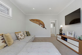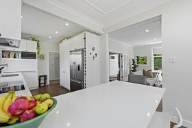 Down the hall a second lounge/media room is a favourite for the family, opening through french doors to a pergola framed side deck perfect for teenagers to entertain their friends while adults host from the main deck. The generous sized master with ensuite looks out to the gardens while a dedicated laundry/utility and large bathroom complete the ground floor. Take the stairs with refreshed original balustrade up to four double bedrooms and another tiled bathroom offering both private retreat and a measure of independence.