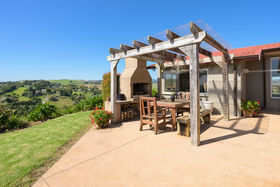 Magnificent panoramic views over rolling green hills towards the inner harbour, with Mt Maunganui beautifully framed in the near distance will enchant and impress every day when living at this sprawling semi rural property. One of the many bonuses associated with Tauranga properties: so often, from unexpected locations, a simply breathtaking outlook is on offer. Elevated, yet with a spectacular flat lawn that doubles as the family football pitch, with several fabulous spaces to either entertain or retreat for some quiet time, this treasured home captured the hearts of the current owners at first sight, but is now ready for a new family to create their own happy memories. Towering native trees house a chorus of birds and fringe this 1970s era home, gently updated with a complementary blend of timber floors, terracotta tiles and wood shutters for a subtle Tuscan vibe. Central to this home is a sunny lounge with picture postcard views, a double faced fire that also warms the open plan dining, and spacious kitchen with equally fabulous views opening to the wide deck and pergola covered patio with outdoor fireplace - outstanding areas for entertaining while soaking in the unobstructed views. There is no shortage of room for everyone to spread out here. A multi function area for a study/ home office or perhaps a cosy library, two large bedrooms, a tiled bathroom with spa bath, master bedroom with ensuite, a second living area currently the 'projector room' for family movie nights, with two more huge bedrooms, a bathroom and a funky bar area. Light and bright with separate access, this has been amazing for teenagers (and all of their friends!), but could easily become self contained living for independent family members or additional income. With the amount of off street parking and garaging available, parking multiple vehicles, a boat and a motorhome won't be a problem. This superb property is blessed with an abundance of outstanding features not least of which is the extensive amount of land while being located up a private lane away from the daily hustle and bustle. With ready access to local amenities, schools and arterial routes, this property is a great choice for those looking to find a versatile family home with options - enjoy a sanctuary of peace and tranquility.